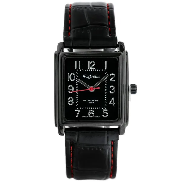 • Extreim női karóra fekete téglalap tok, fekete szövet szíj
