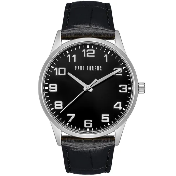 • Paul Lorens férfi karóra fekete bőrszíjjal, dátummal, 41 mm