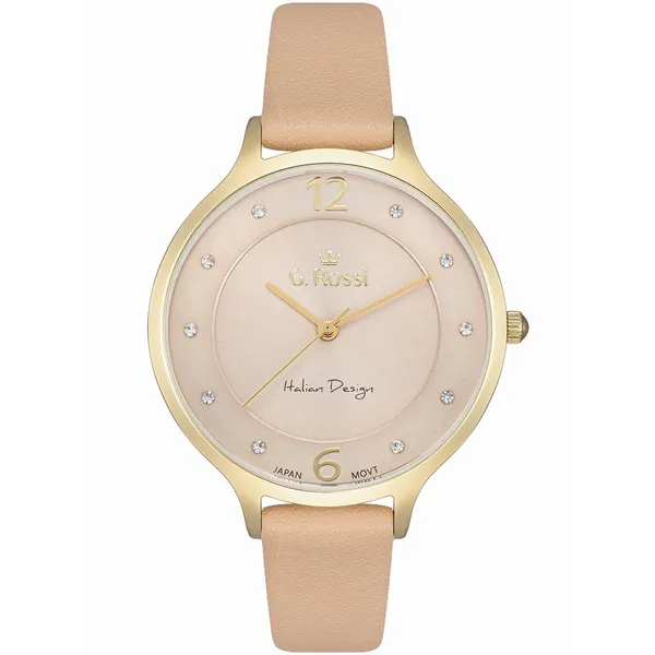 • G. Rossi női кварc karóra bézs bőrszíjjal, arany színű tok