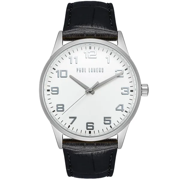 • Paul Lorens férfi karóra, fehér számlap, fekete bőrszíj, 41 mm