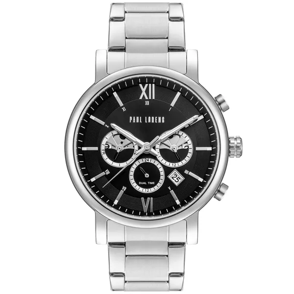 • Paul Lorens férfi karóra fekete számlappal, ezüst acél szíjjal