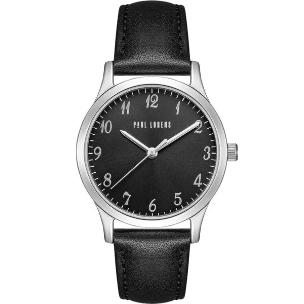 • Paul Lorens női karóra fekete bőrszíjjal, fekete számlappal