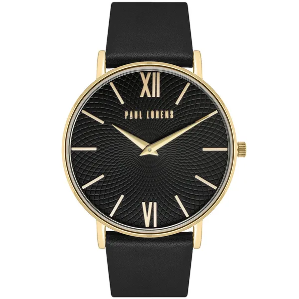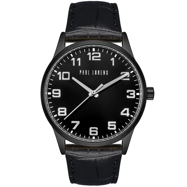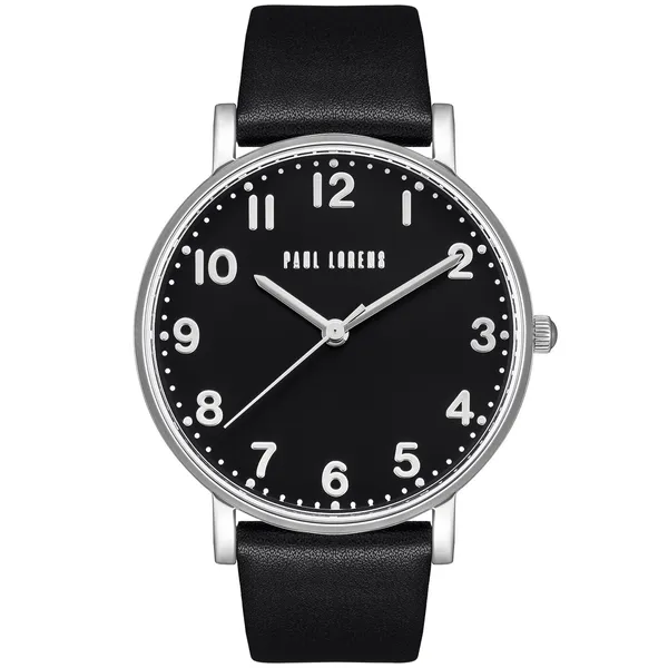 • Paul Lorens férfi karóra, fekete bőrszíjjal, 41 mm, WR30
