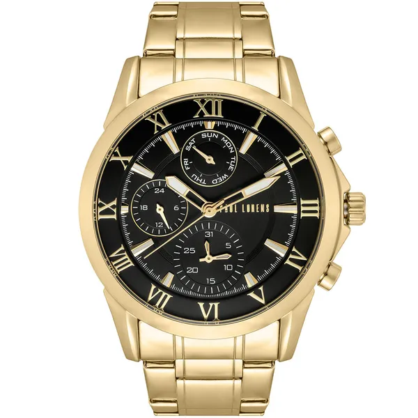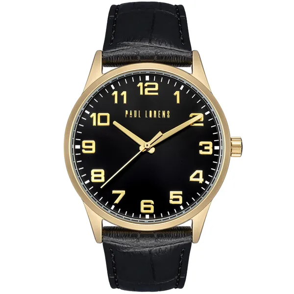 • Paul Lorens uniszex кварc karóra, fekete bőrszíj, arany tok