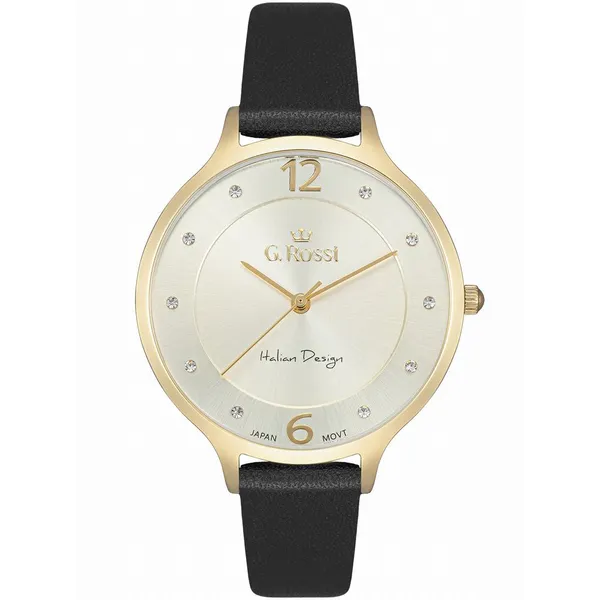 • Női kvarc karóra fekete bőrszíjjal, arany számlappal, 38 mm