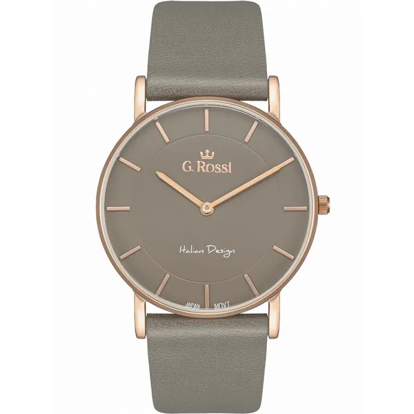 • Női кварц karóra szürke bőrszíjjal, szürke számlappal, 40 mm