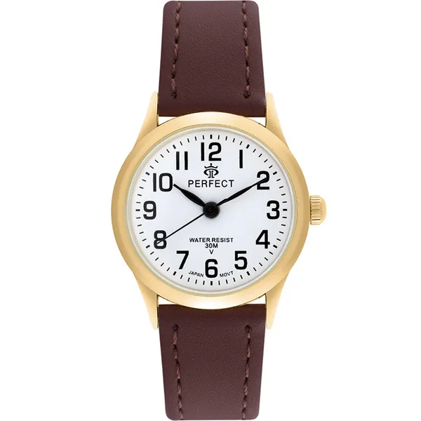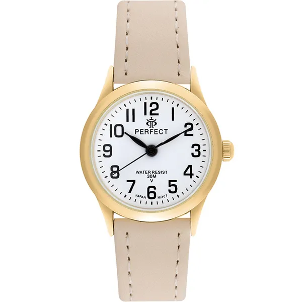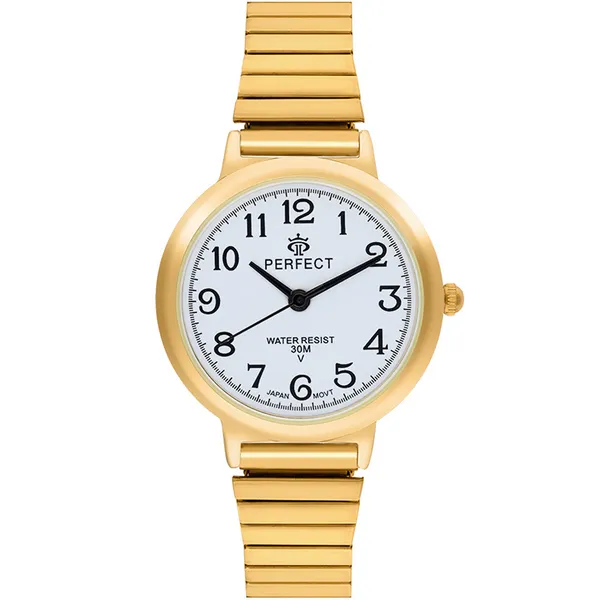 • Perfect női karóra arany tok fehér számlap 30 mm 3 ATM