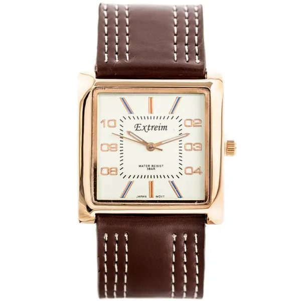• Női кварc karóra négyzetes tokkal, ezüst számlappal, barna szíjjal