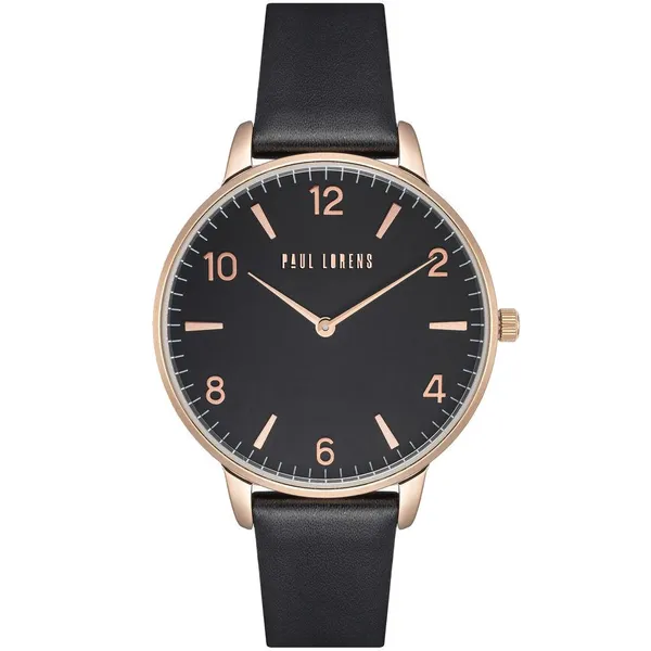 • Paul Lorens női karóra, fekete bőrszíj, fekete számlap, 38 mm