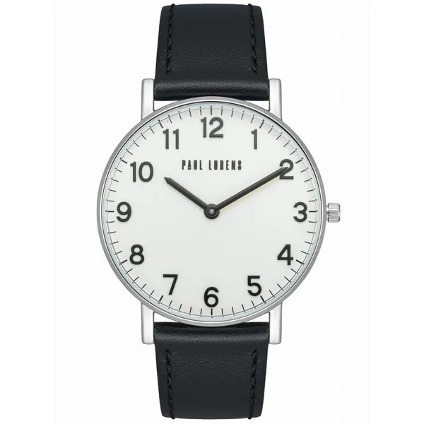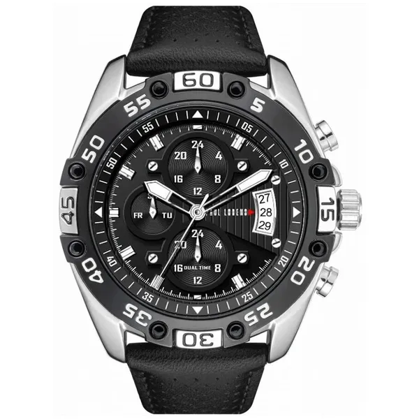 • Paul Lorens férfi karóra fekete bőrszíjjal, ezüst számlappal