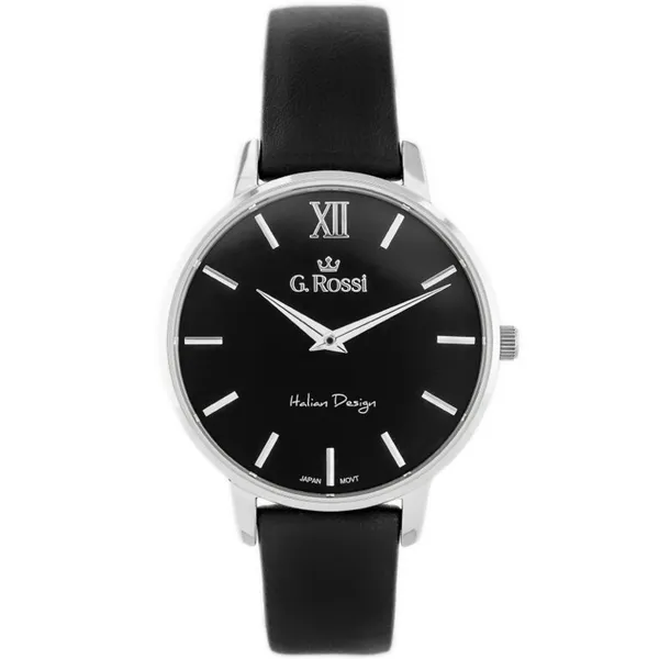 • G. Rossi női kvarcóra fekete bőrszíjjal, fekete számlappal
