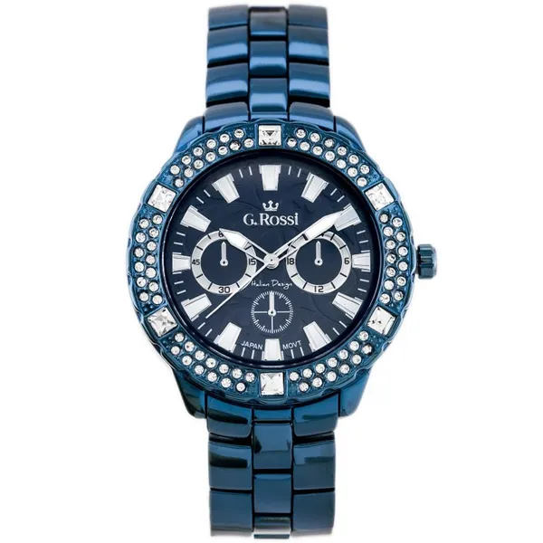 • Női kvarc karóra sötétkék számlappal és fém szíjjal, díszdobozzal