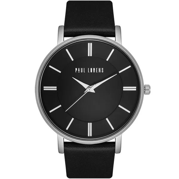• Férfi karóra fekete bőrszíjjal, fekete számlappal 42 mm