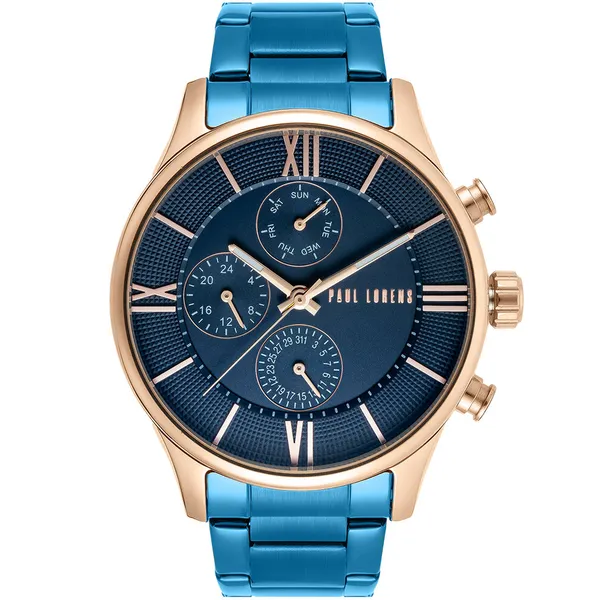 • Férfi kvarc karóra sötétkék számlappal és fém szíjjal, 45 mm