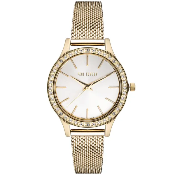 • Paul Lorens női кварц karóra ezüst számlappal, arany fém szíjjal