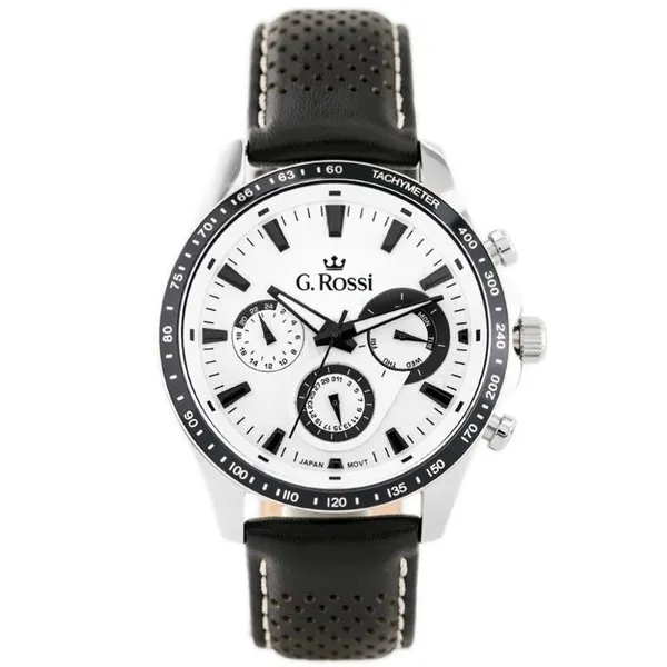 • Férfi kvarc karóra bőr szíjjal, ezüst-fehér számlap, WR50