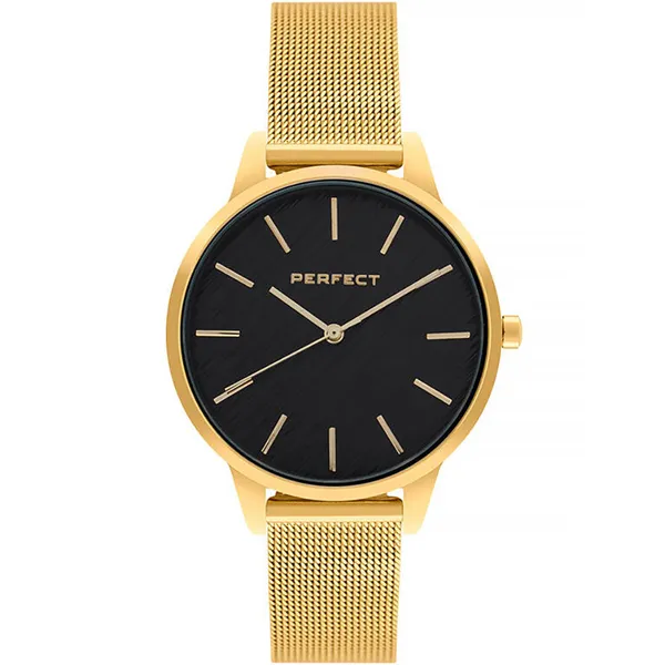 • Perfect női kvarc karóra, fekete számlap, arany színű fém szíj