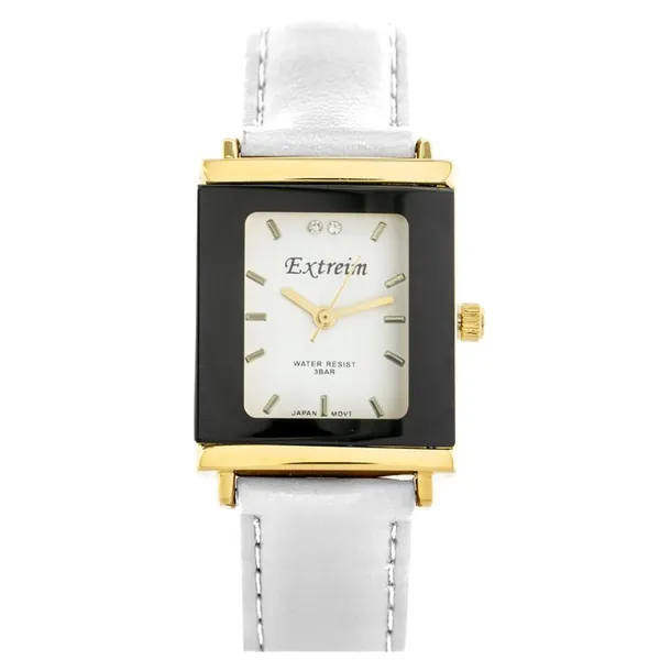 • Női kvarc karóra fehér számlappal, téglalap alakú tokkal