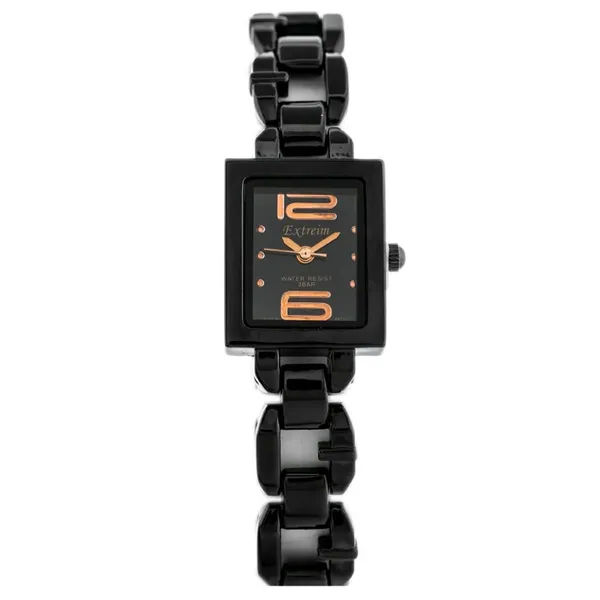 • Női téglalap alakú kvarc karóra fekete fém szíjjal WR30