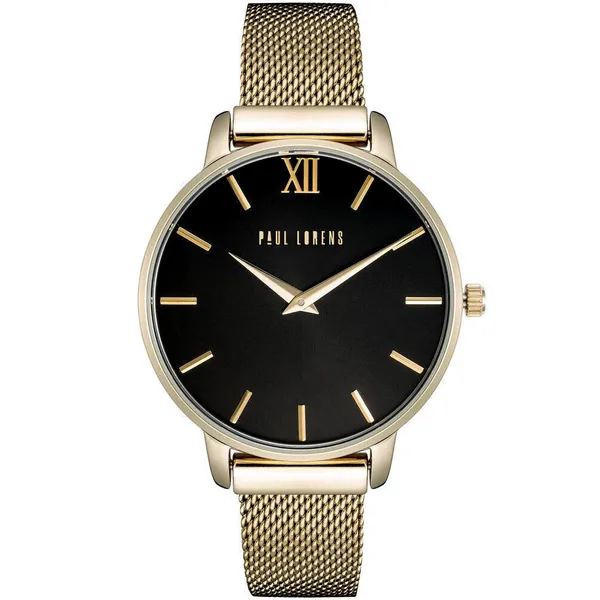 • Paul Lorens női kvarc karóra, fekete számlap, arany mesh szíj