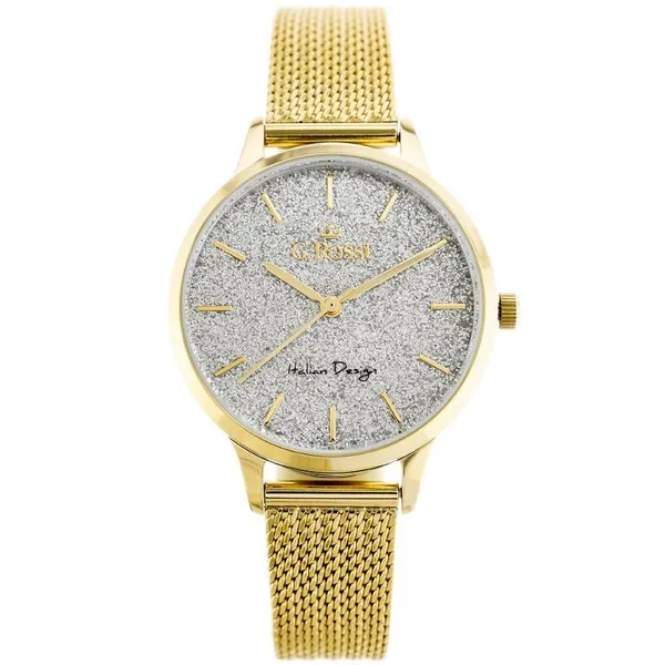 • G. Rossi női кварc karóra arany fém szíjjal, ezüst számlappal