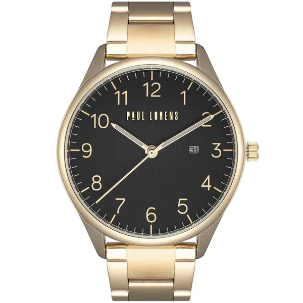 • Paul Lorens férfi kvarc karóra, fekete számlap, arany fém szíj, 44 mm