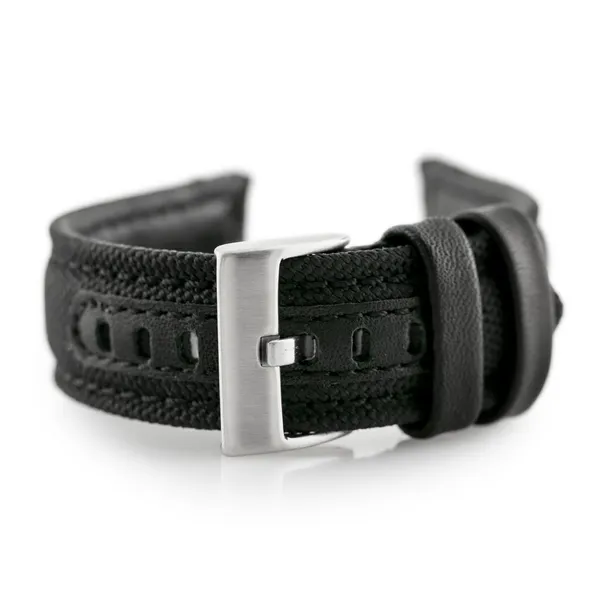 • Fekete természetes bőr óraszíj ezüstszínű csattal, 18 mm
