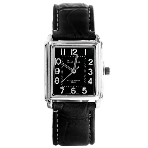 • Női кварc karóra, fekete számlap, téglalap tok, WR30