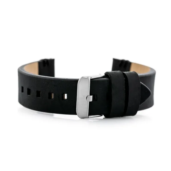 • Fekete természetes bőr óraszíj ezüst csattal, 22 mm