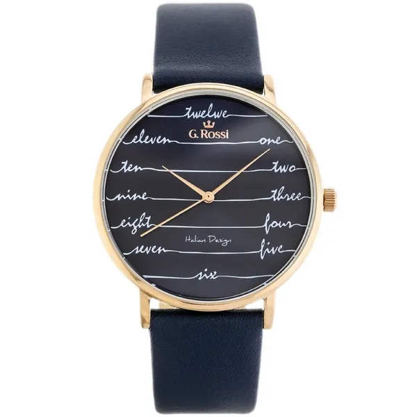 • Női kvarc karóra kék bőrszíjjal, kék számlappal, rozéarany tok