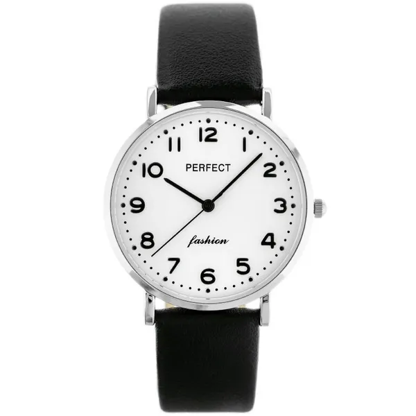 • Perfect női kvarc karóra, ezüst számlap, fekete bőrszíj, WR30