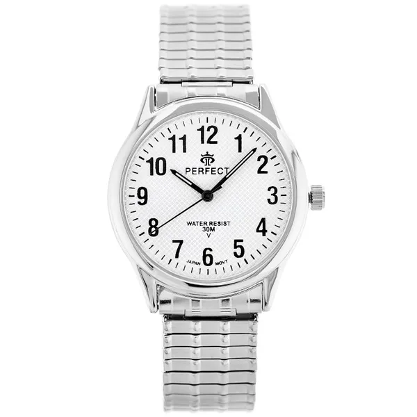 • Férfi kvarc karóra fehér számlappal, ezüst fém szíjjal