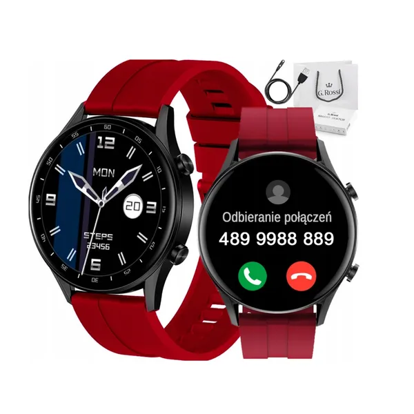 • Férfi okosóra Bluetooth hívással, pulzusmérő, IP68, fekete-piros