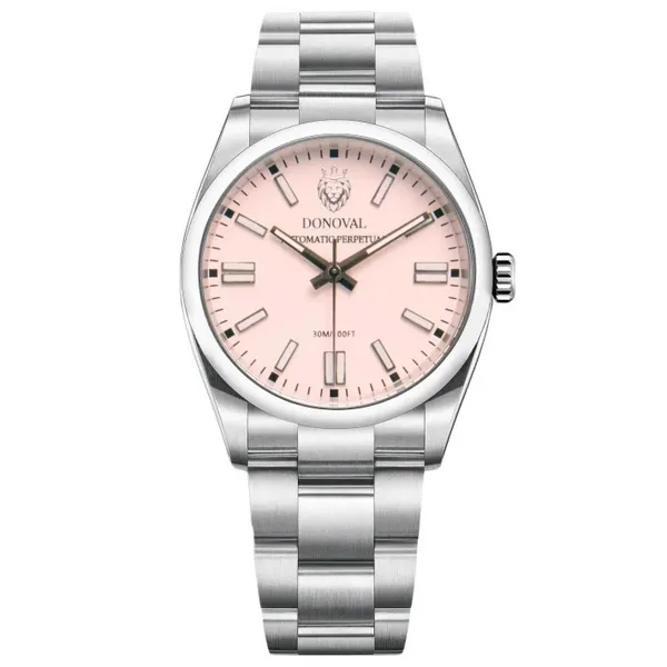 • Donoval automata férfi karóra, rózsaszín számlap, acél, 41 mm