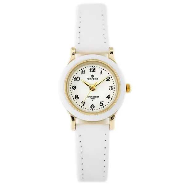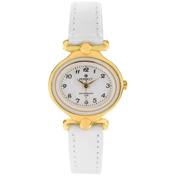 • Gyerek karóra elsőáldozásra, fehér szíjjal, aranyszínű tokban