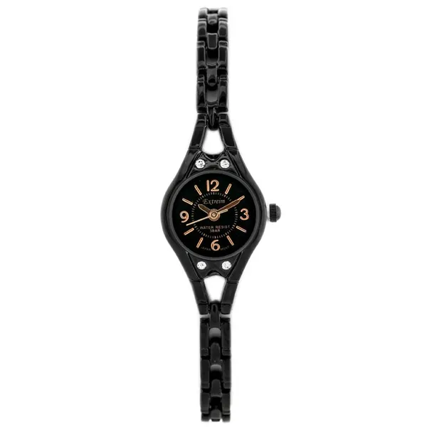 • Női kvarc karóra fekete fém szíjjal, ásványi üveggel