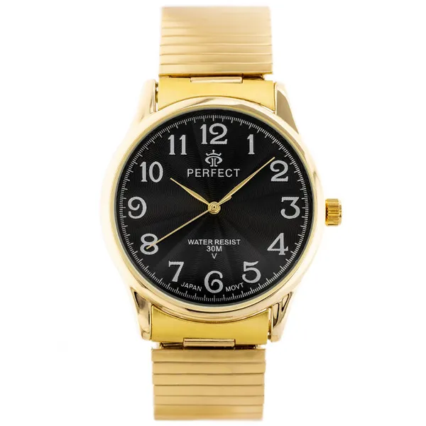 • Férfi karóra fekete számlappal, aranyszínű fém szíjjal