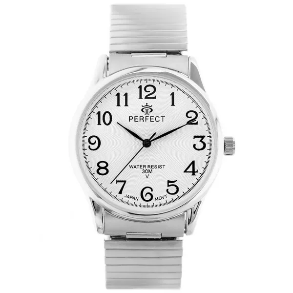 • Férfi kvarc karóra fehér számlappal, ezüst színű fém szíjjal