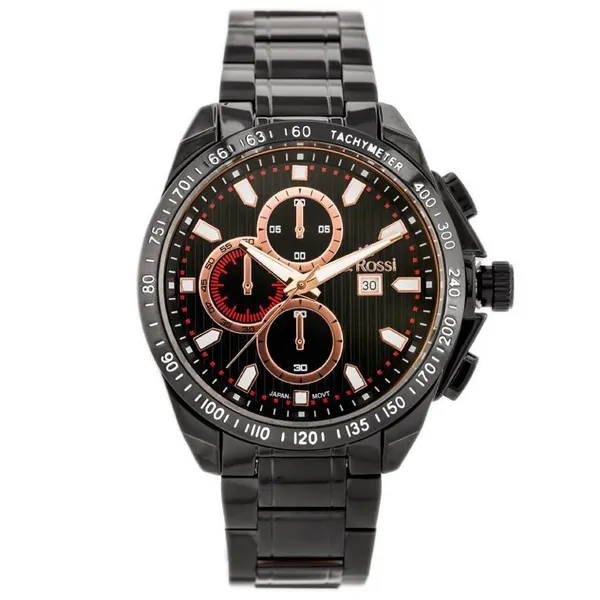 • Férfi kvarc karóra fekete fém szíjjal, fekete számlappal, 45 mm