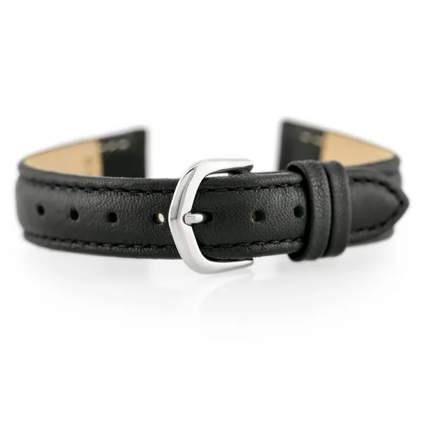 • BISSET fekete természetes bőr óraszíj, 14 mm