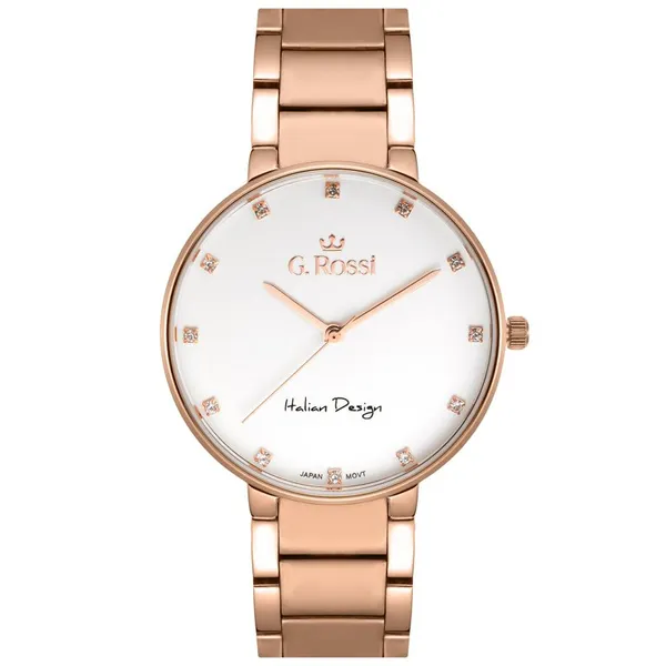 • Női kvarc karóra rózsaarany fémszíjjal, ezüst számlappal