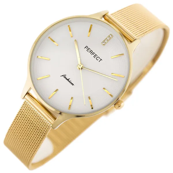 • Perfect női kvarc karóra, arany színű fém szíjjal, ezüst számlap