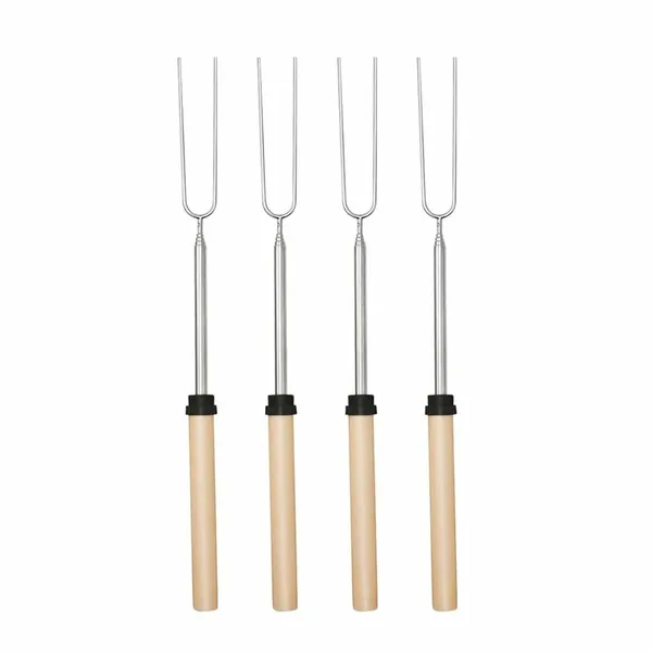 • Teleszkópos grillvilla készlet 4 db, rozsdamentes acél, bambusz nyél