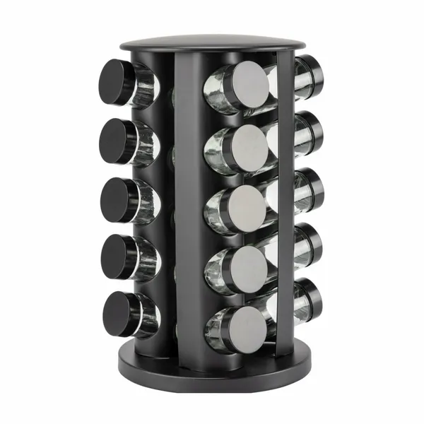 • Forgó fűszertartó állvány 20 db 90 ml üveg fűszeres üveggel, fekete