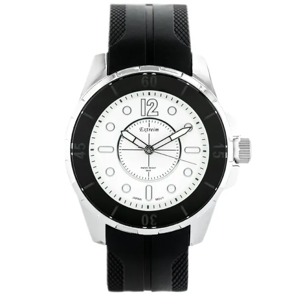 • Férfi кварц karóra fehér számlappal, fekete szilikon szíjjal