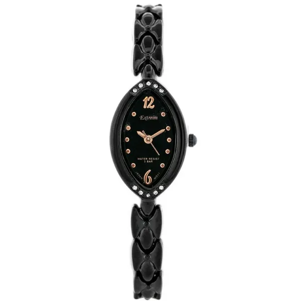 • Női kvarc karóra fekete fém szíjjal, ovális tok, WR30