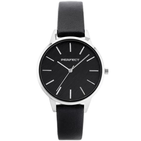 • Női karóra fekete bőrszíjjal, fekete számlappal, 34 mm
