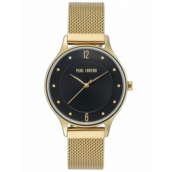 • Paul Lorens női kvarc karóra, fekete számlap, arany fém szíj 36 mm