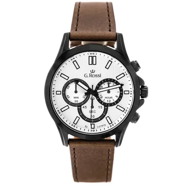 • Férfi кварc karóra barna bőrszíjjal, ezüst számlappal, fekete tok
