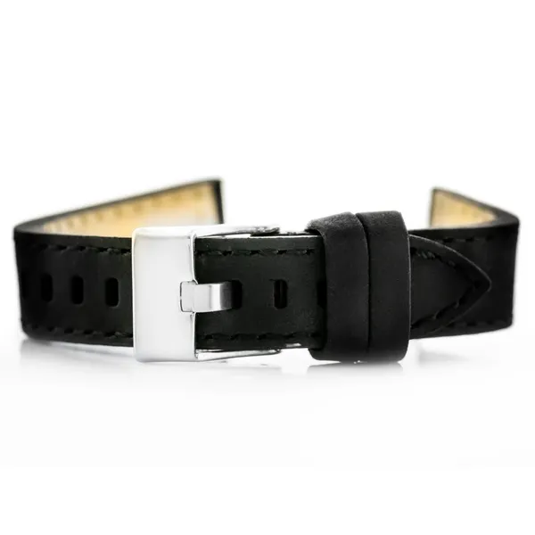 • Fekete természetes bőr óraszíj alátéttel, 22 mm